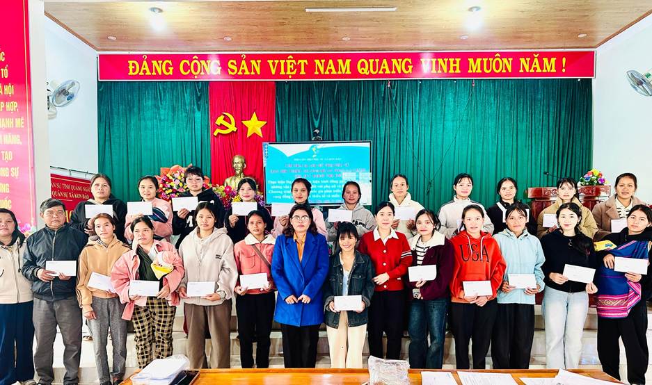 Thực hiện Kế hoạch số 03/KH-BTV, ngày 09/12/2025 của Ban Thường vụ Hội LHPN xã về việc triển khai thực hiện Dự án 8 “Thực hiện bình đẳng giới và giải quyết những vấn đề cấp thiết đối với phụ nữ và trẻ em” năm 2025, thuộc Chương trình mục tiêu quốc gia phát triển kinh tế - xã hội vùng đồng bào dân tộc thiểu số và miền núi. Sáng ngày 31/12/2025 tại hội trường UBMTTQVN xã Kon Đào, Hội Liên hiệp Phụ nữ xã đã tổ chức chi trả chế độ hỗ trợ cho phụ nữ dân tộc thiểu số sinh con đúng chính sách, sinh tại cơ sở y tế.