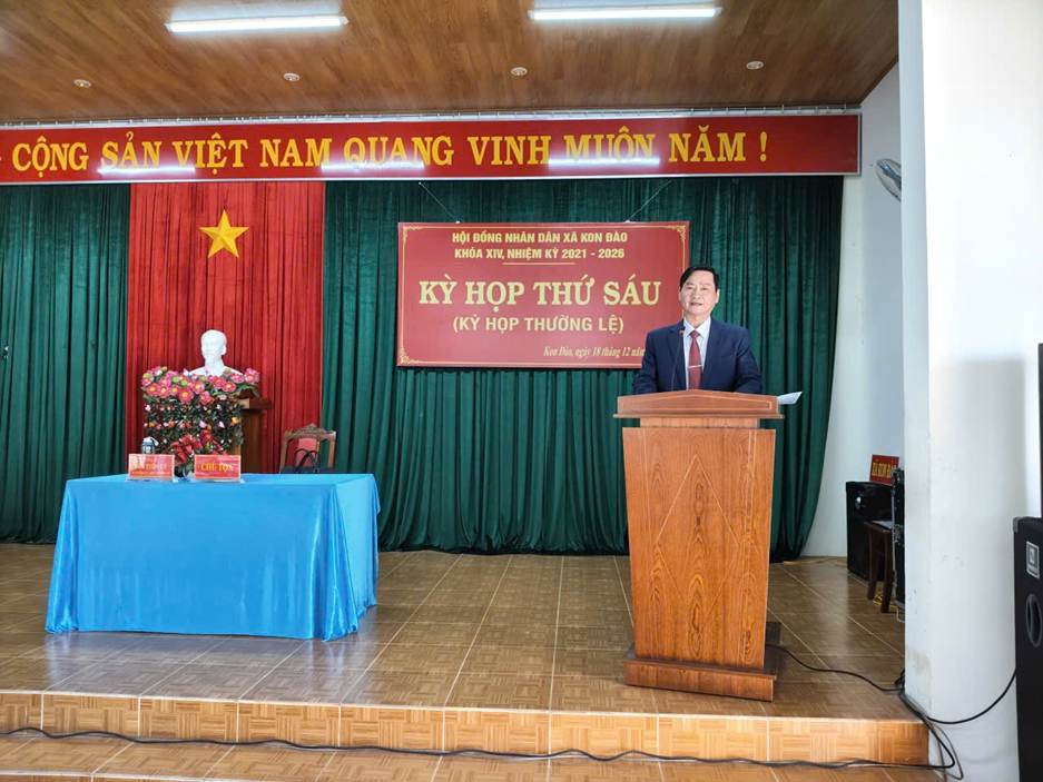 Ngày 18/12/2025, Hội đồng nhân dân xã Kon Đào khóa XIV, nhiệm kỳ 2021–2026 đã long trọng tổ chức Kỳ họp thứ 6 – Kỳ họp thường lệ cuối năm 2025. Đây là kỳ họp có ý nghĩa quan trọng nhằm đánh giá toàn diện tình hình thực hiện nhiệm vụ phát triển kinh tế – xã hội, quốc phòng – an ninh năm 2025; đồng thời quyết định các nội dung trọng tâm để triển khai thực hiện nhiệm vụ năm 2026 và những năm tiếp theo. Đồng chí Bùi Tiến Lý – Bí Thư Đảng uỷ, Chủ tịch HĐND xã Chủ toạ kỳ họp.