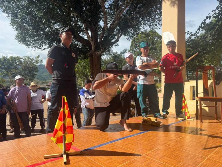 (VĐV thôn Đăk Rơ Gia và BCH Quân sự xã thi đấu nội dung Đẩy gậy nam)