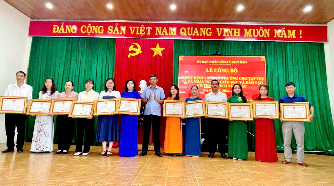 Buổi lễ diễn ra trong không khí trang trọng, phấn khởi và ấm áp, thể hiện sự quan tâm sâu sắc của cấp ủy, chính quyền địa phương đối với sự nghiệp giáo dục. Những phần thưởng được trao là sự ghi nhận xứng đáng cho nỗ lực, cống hiến của các tập thể, cá nhân, đồng thời là nguồn động viên, khích lệ tinh thần để đội ngũ cán bộ, giáo viên, nhân viên ngành Giáo dục xã Kon Đào tiếp tục phấn đấu, đạt nhiều thành tích cao hơn trong những năm học tới.